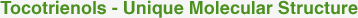 Tocotrienols’ and tocopherols’ molecular structures differ in that tocotrienols have three unsaturated double bonds on the side chain while tocopherols have a saturated side chain. [1]